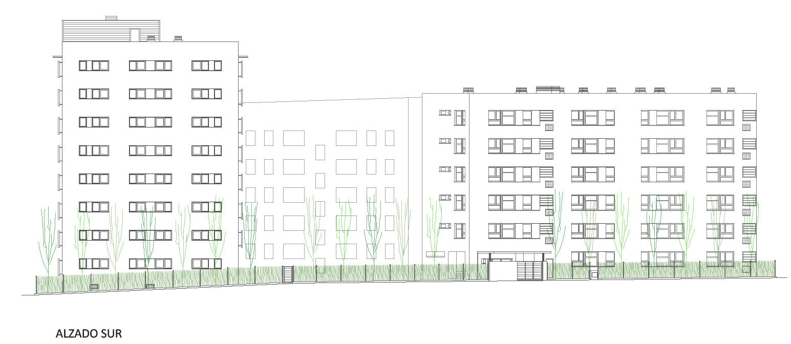 Se proyectan dos tipos de edificio. Un bloque alargado y bajo, destinado a vivienda de mayor tamaño, con dos orientaciones cruzadas.